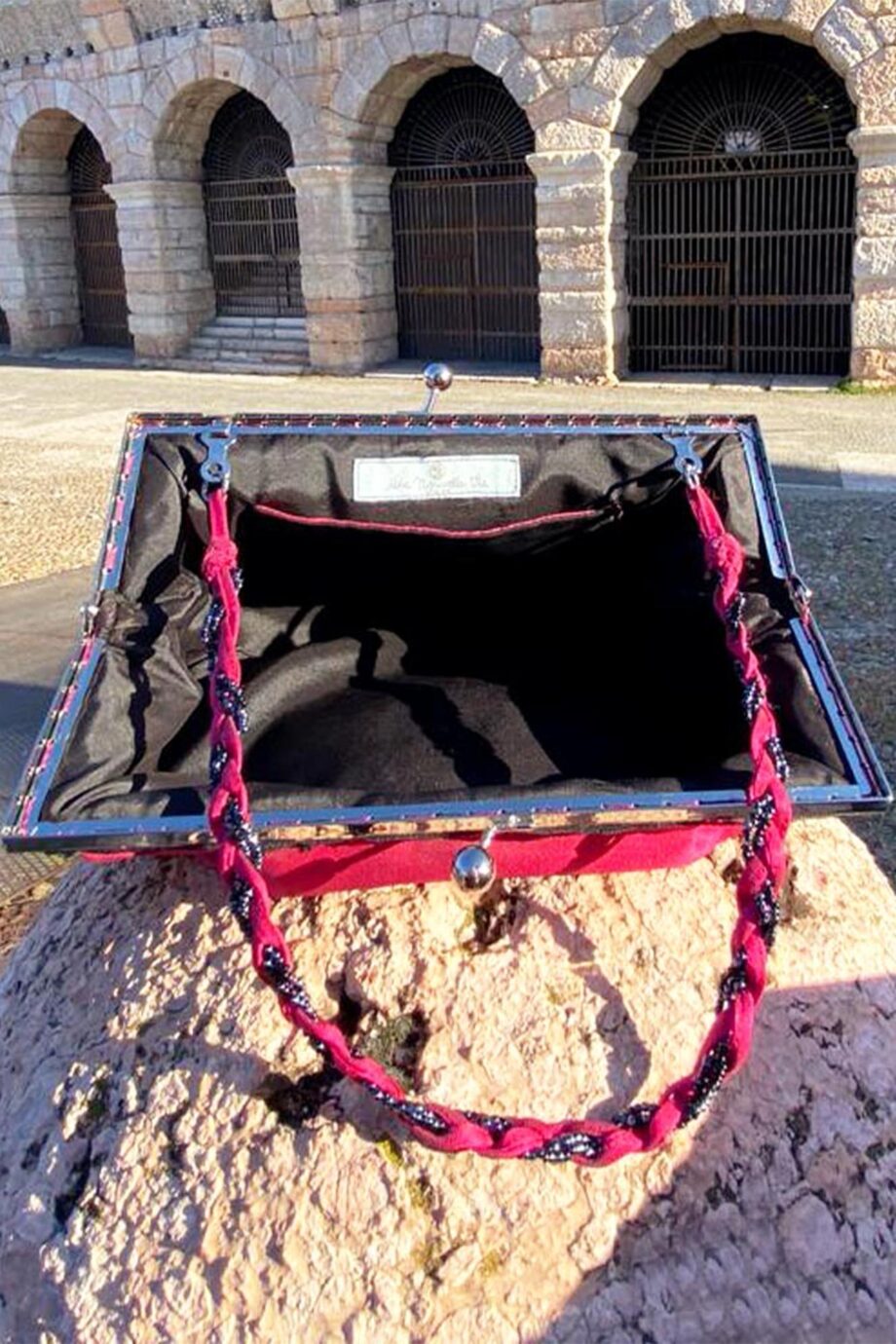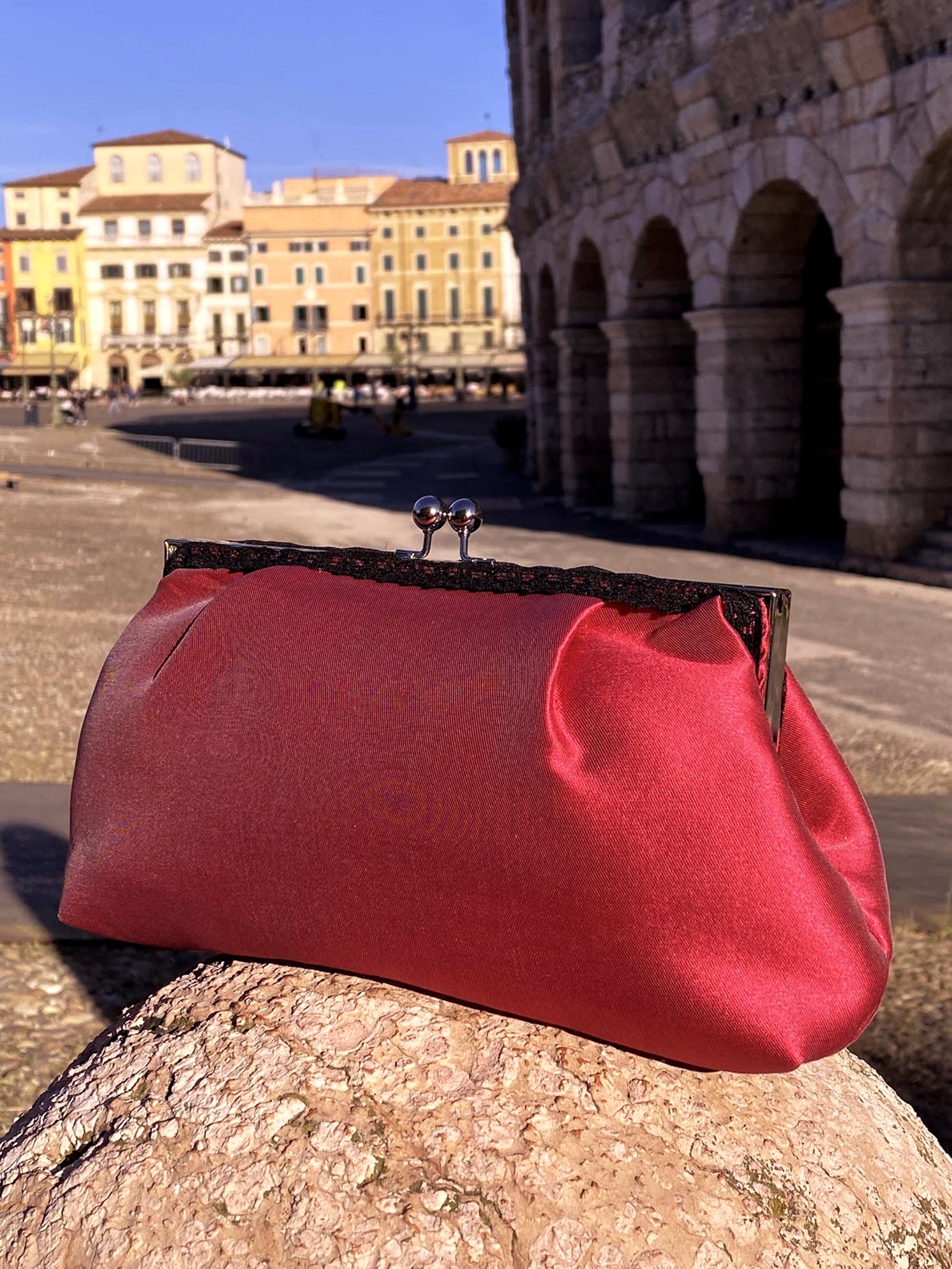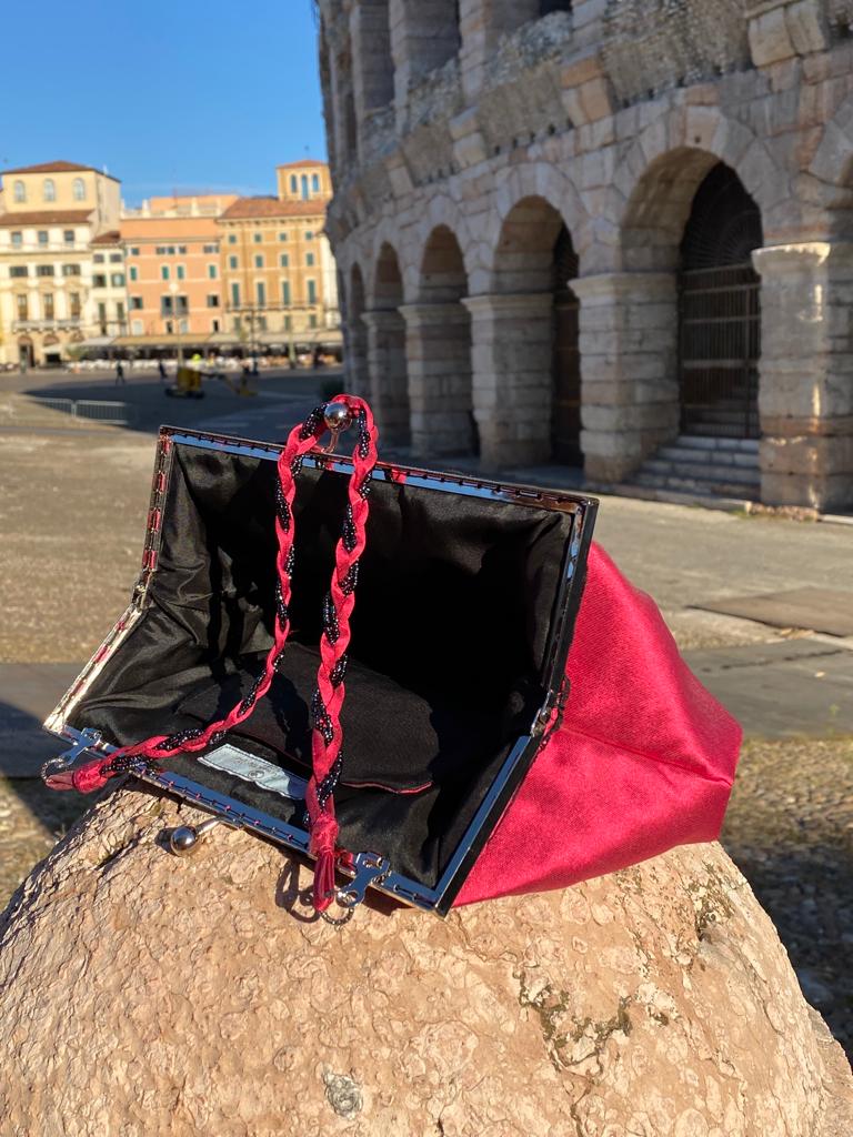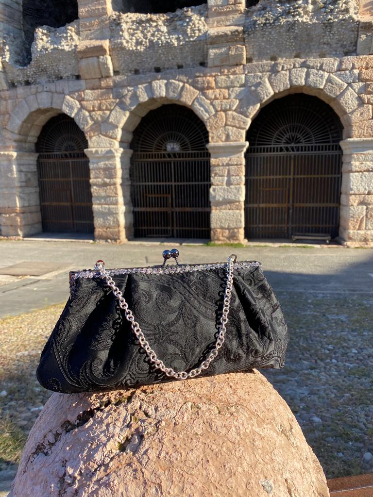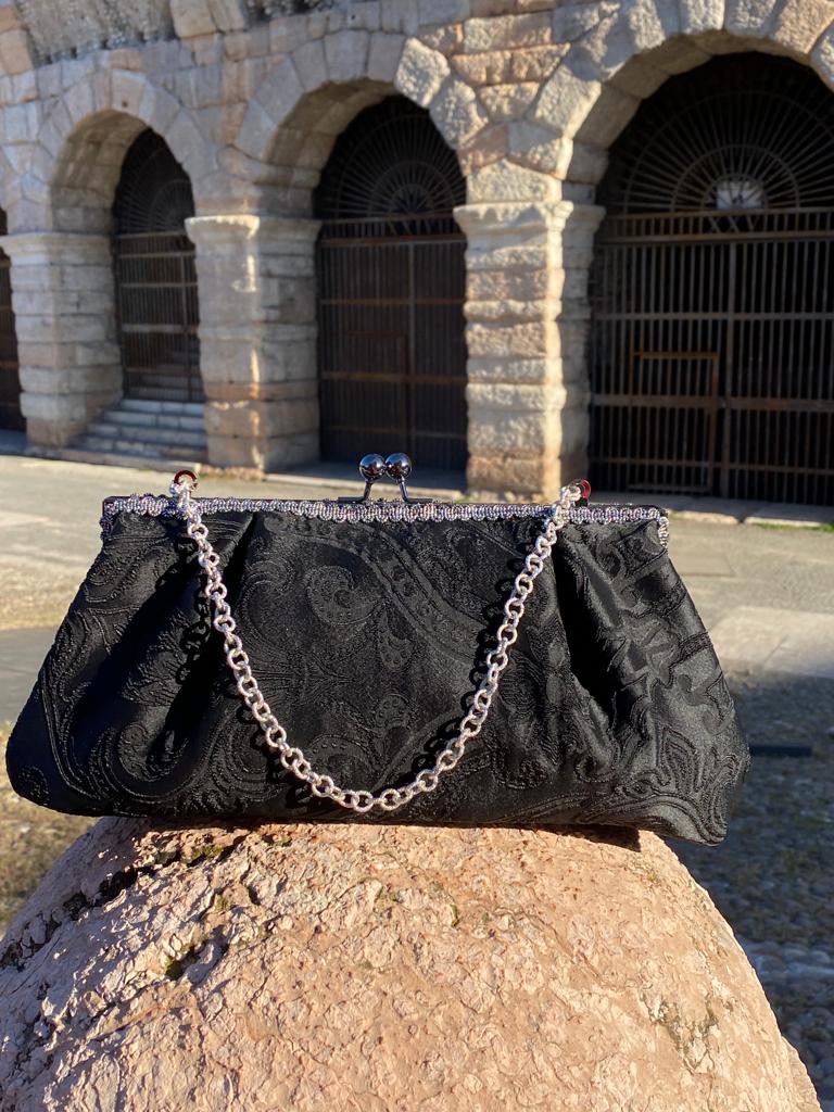 Puoi portarla a mano o con catenella interna per muoverti liberamente.