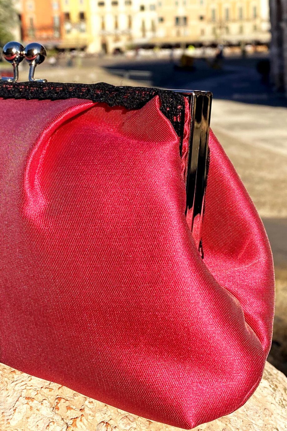 Pochette semplice ed elegante, nella sua classica forma e clac di chiusura in metallo colore argento.