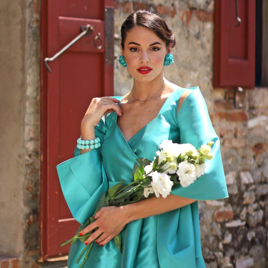 Stola in mikado coordinata con abito o in contrasto di colore, da indossare con un romantico fiocco, oppure sulla spalla per un look più informale.