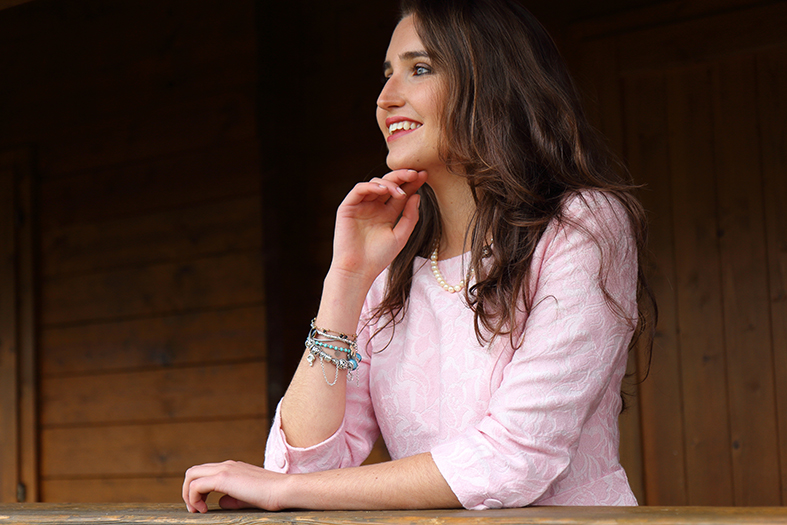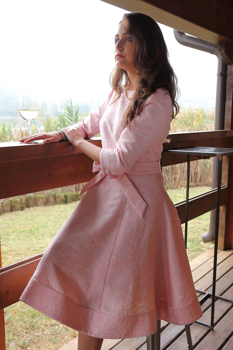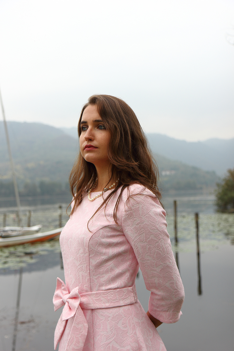 La sua gonna ti rende leggera, le maniche a tre quarti lasciano spazio ai guanti che esaltano la tua femminilità.